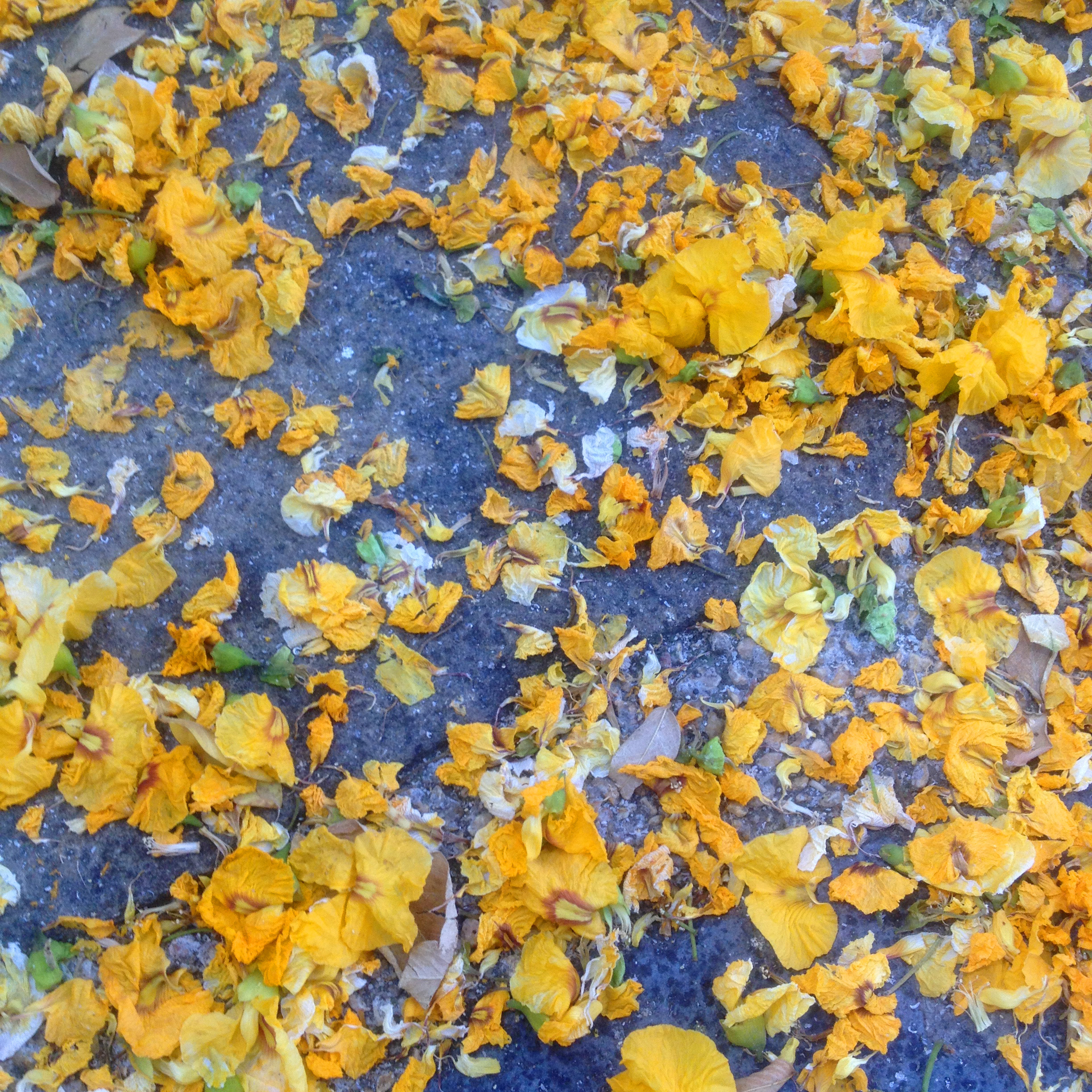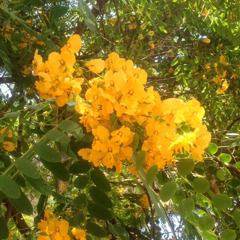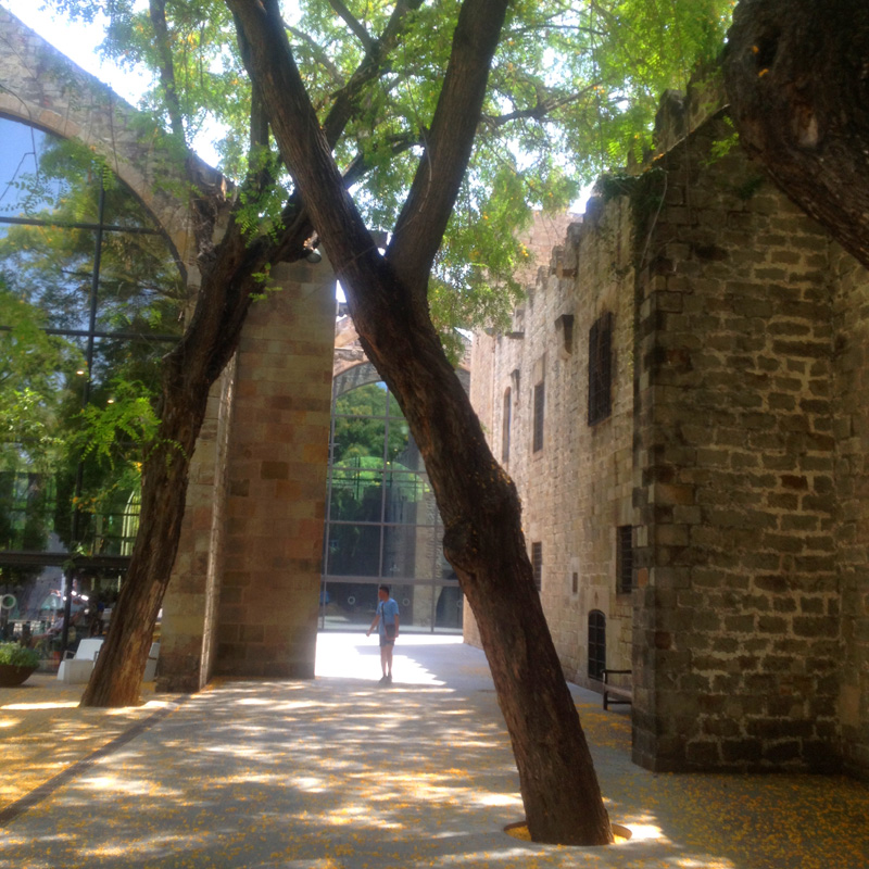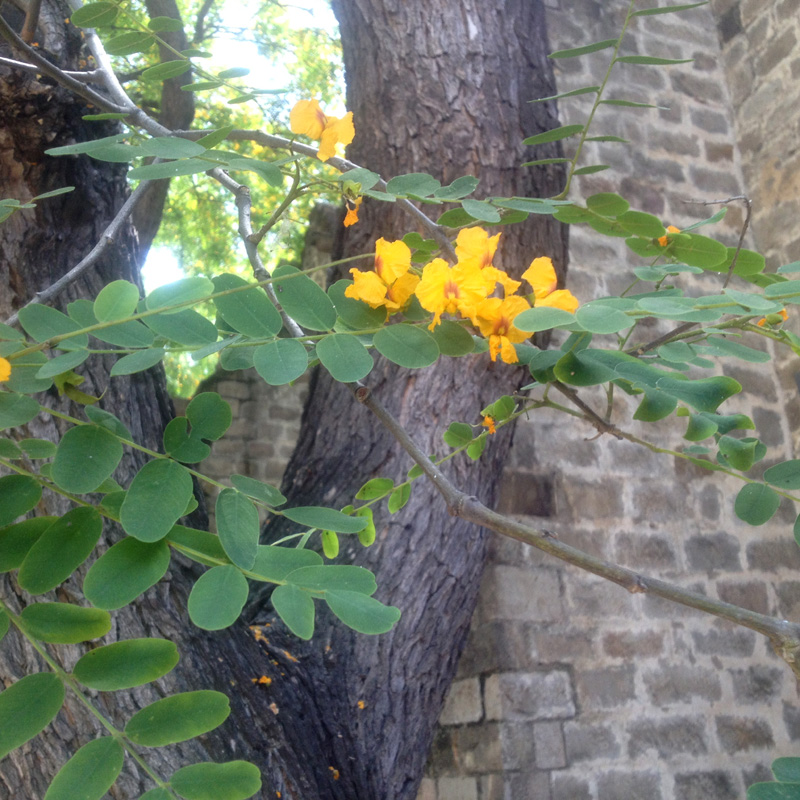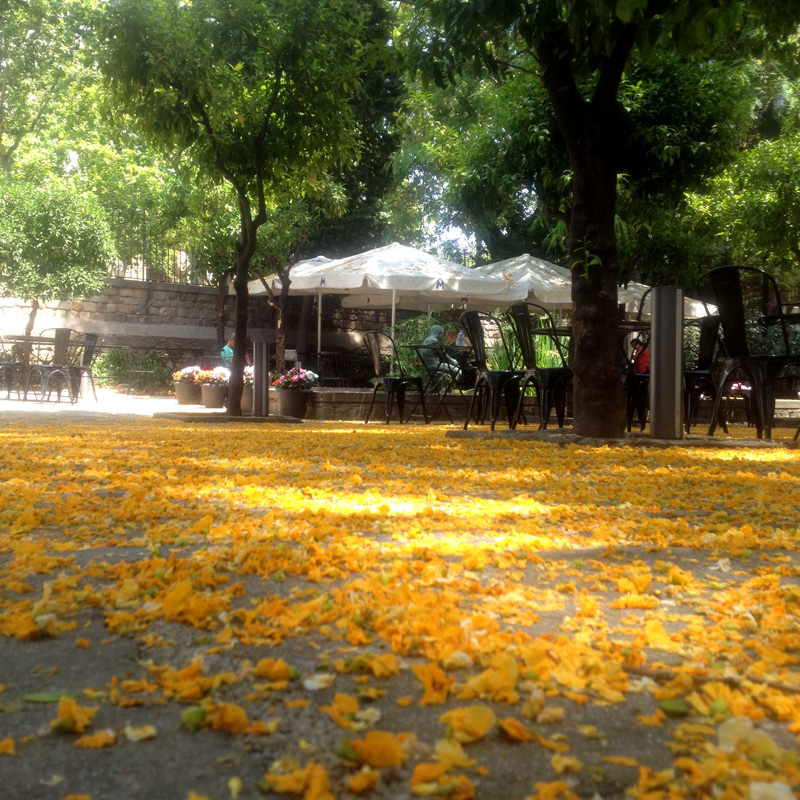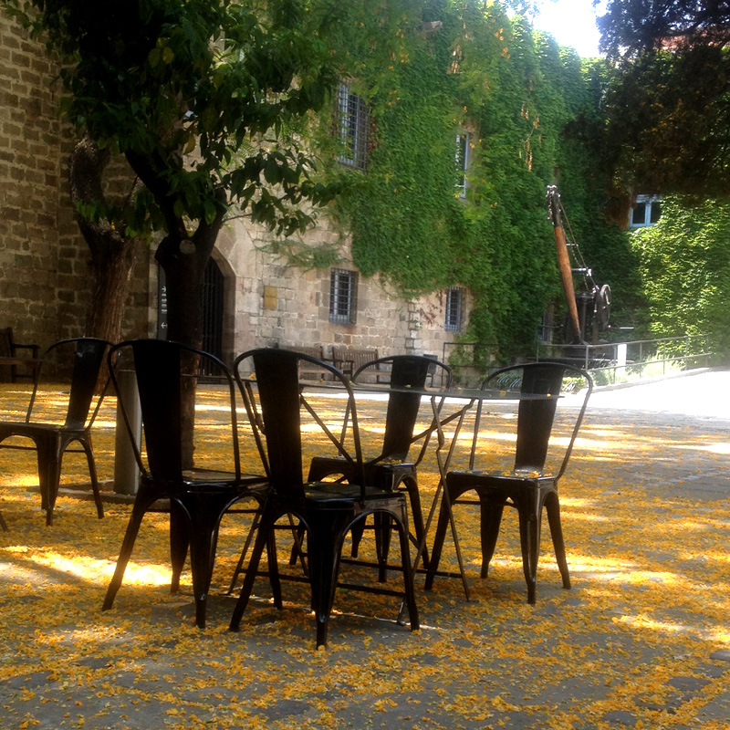 Tipuans grow in abundance near my house and I always look forward to their flowering time. It’s a very special feeling to walk on the golden carpet of petals. And my photographs show the courtyard of the Maritime museum, where huge old tipuans grow. When in bloom, this yard turns into a jewel box. This is one of my favorite places in Barcelona.