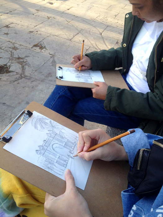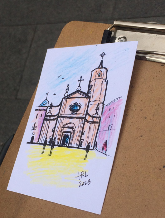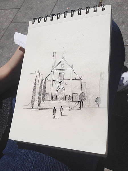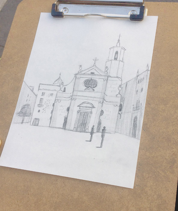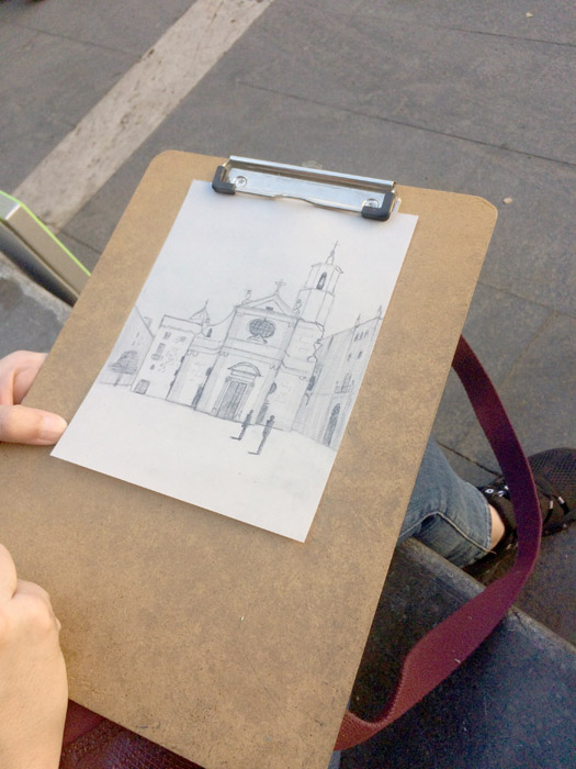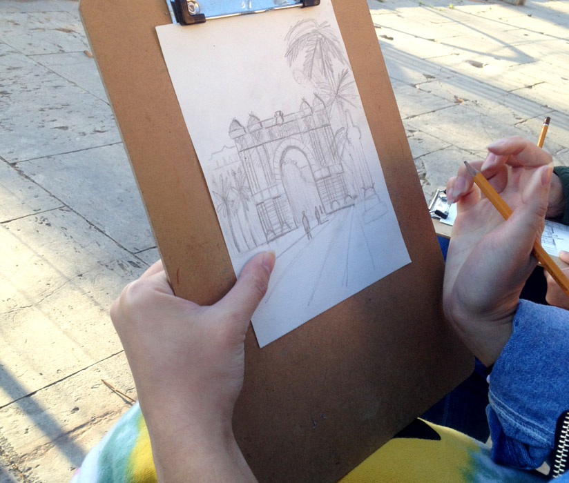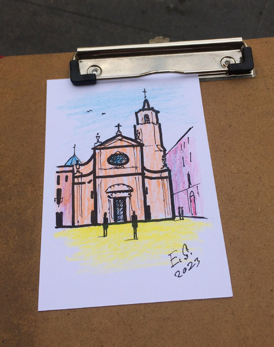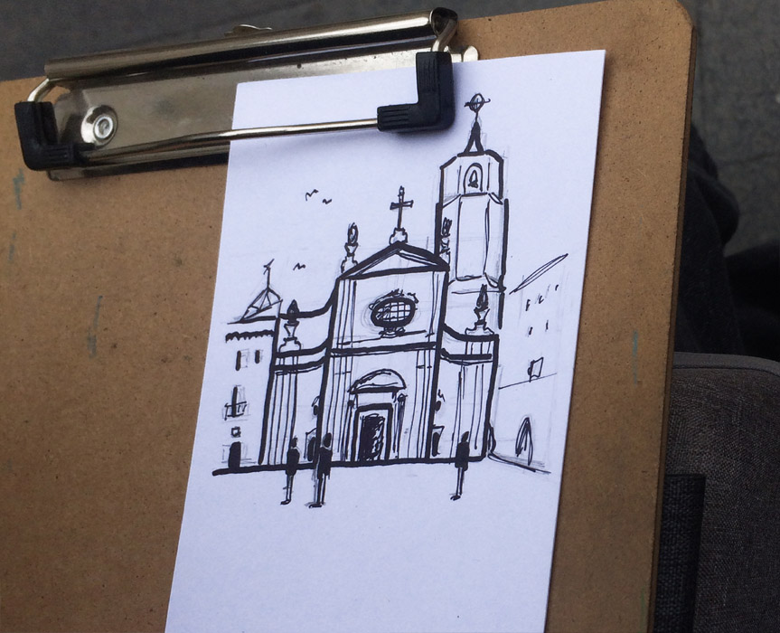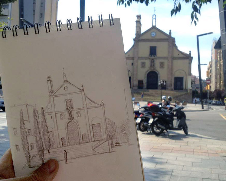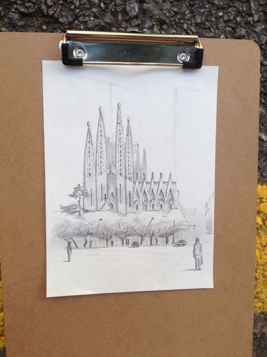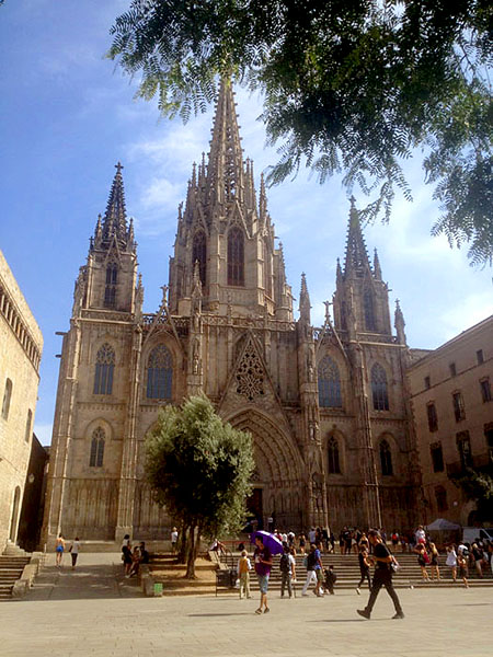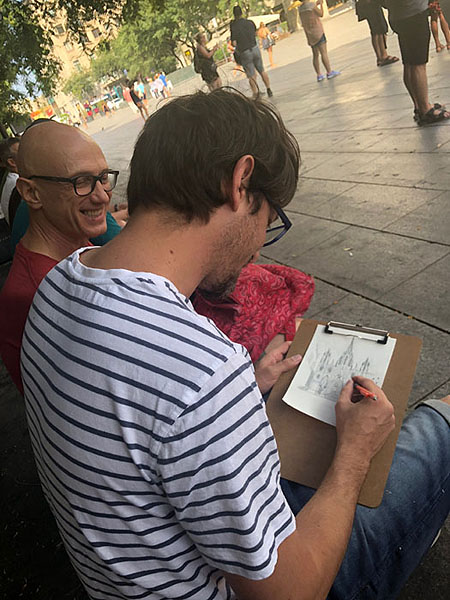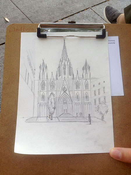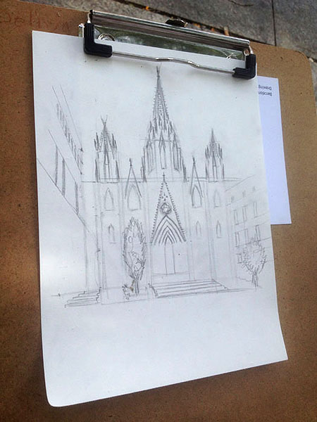 Sketching the Cathedral of the Holy Cross and Saint Eulalia also known as Barcelona Cathedral.