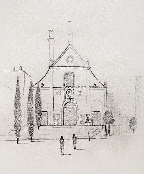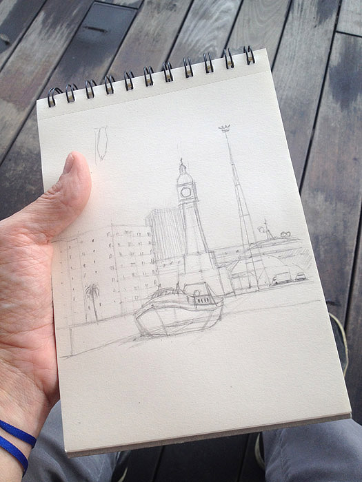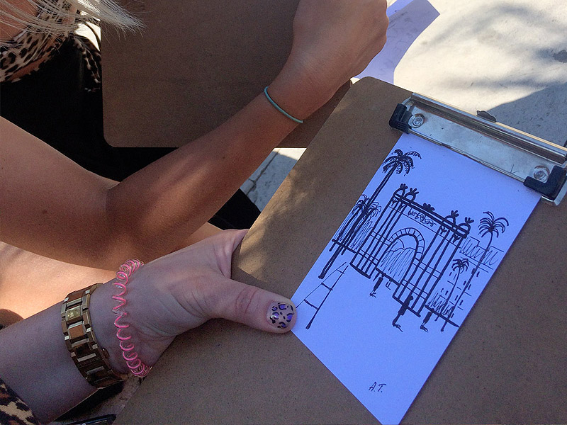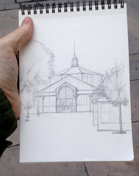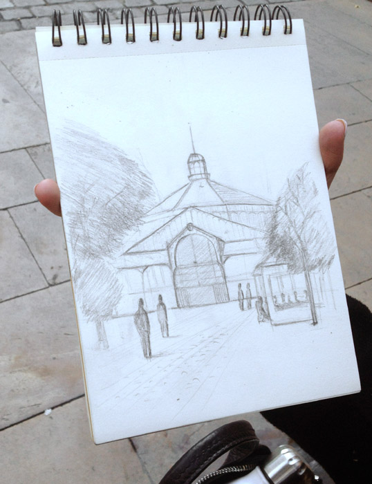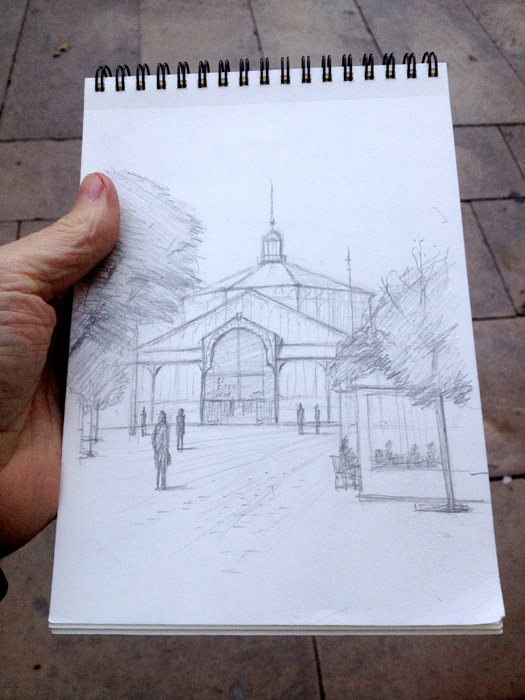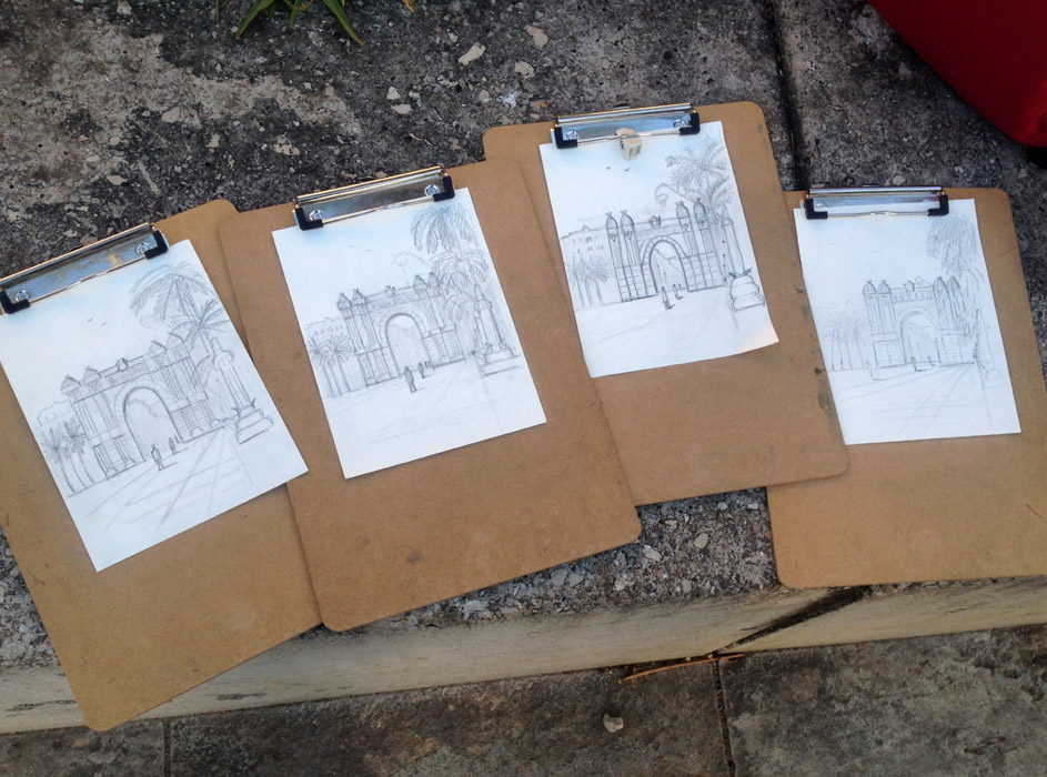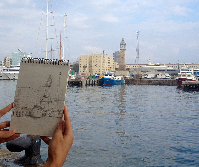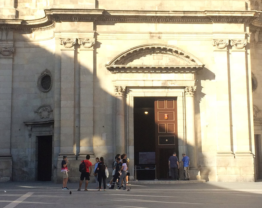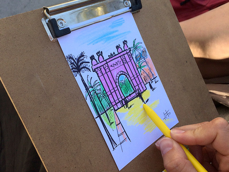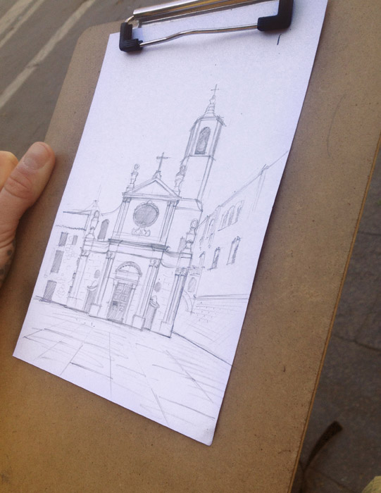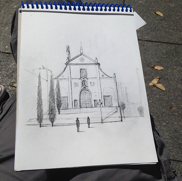 Sketching the Cathedral of the Holy Cross and Saint Eulalia also known as Barcelona Cathedral.